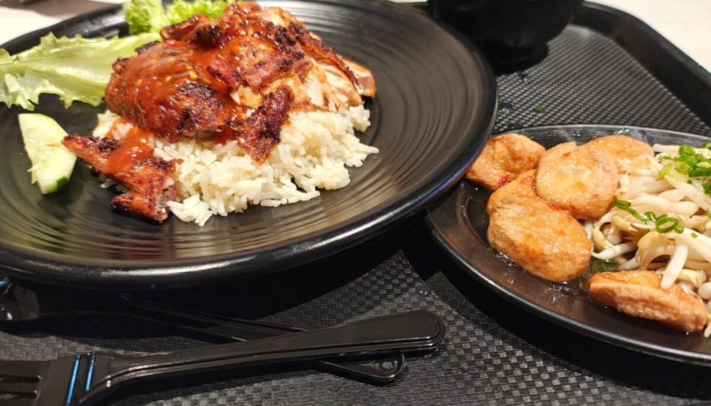 出てきたのはコレ。Spicy Roasted Chken Rice。15.90リンギット。約600円弱。