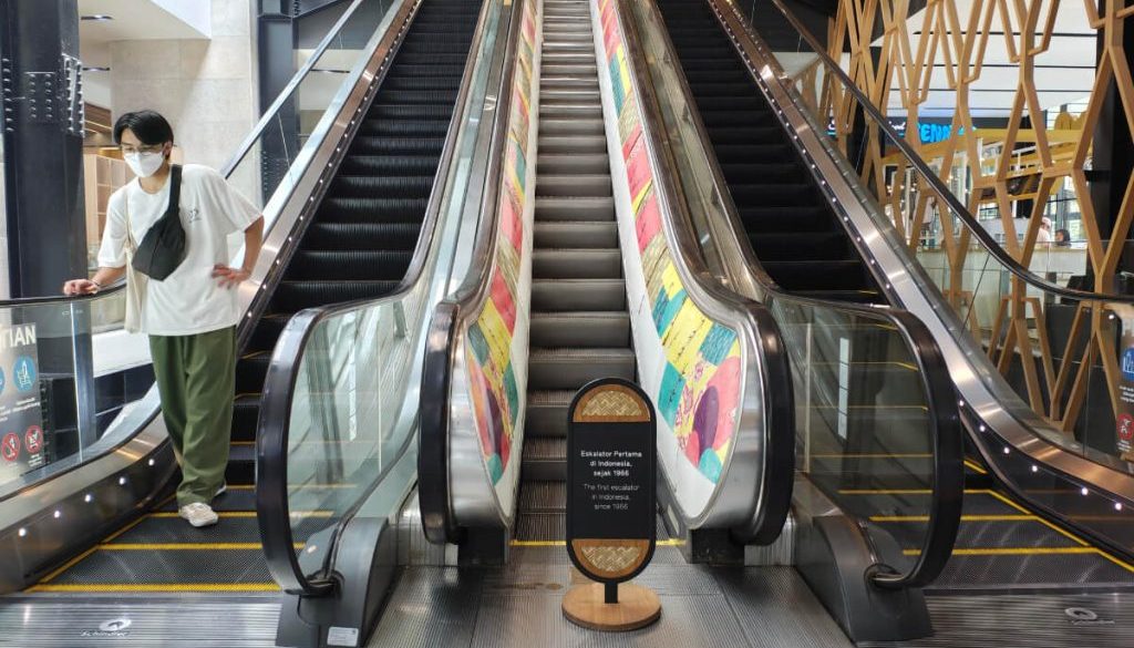 この真ん中の銀色のはインドネシアで一番古いエスカレーター。産業遺産としてかな、残してあるんだね。