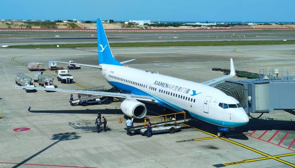 ちょっと早めにラウンジ出発。ジワジワ混んできてオジサン集団の日本語も聞こえてきたしね。やっと会えたな、廈門航空。