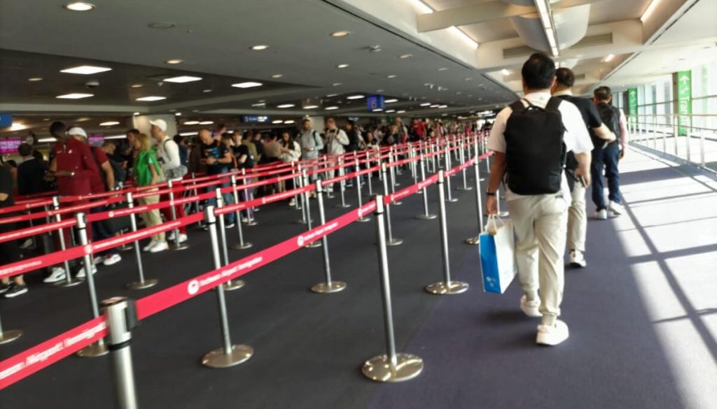 長い通路を歩いて先ずは検疫。17:23に到着してQ-CODEをスキャンされ、顔写真を撮られた。