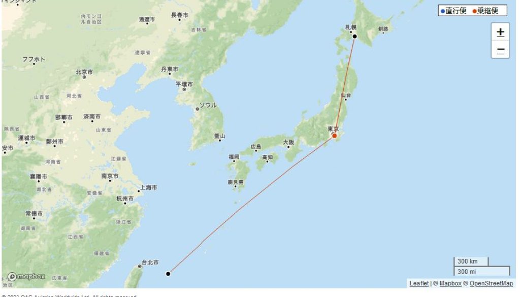 東京(羽田)(19:00) – 札幌(千歳)(20:30)