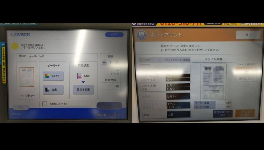 こうして手順をみるとセブン系のネットプリントの方が送信段階で一手間多い。
