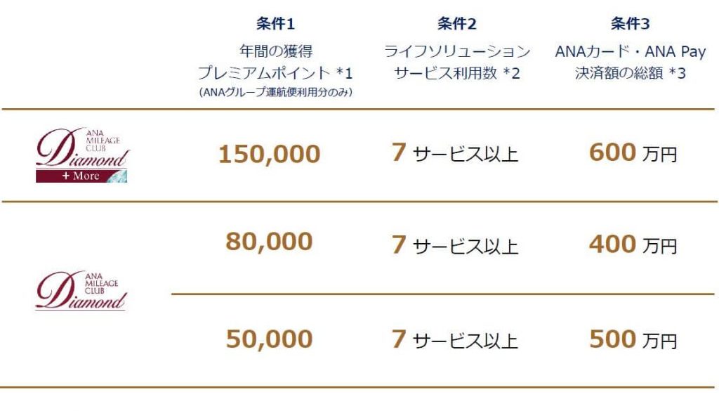LSサービス利用でのダイヤモンドステイタスの獲得基準