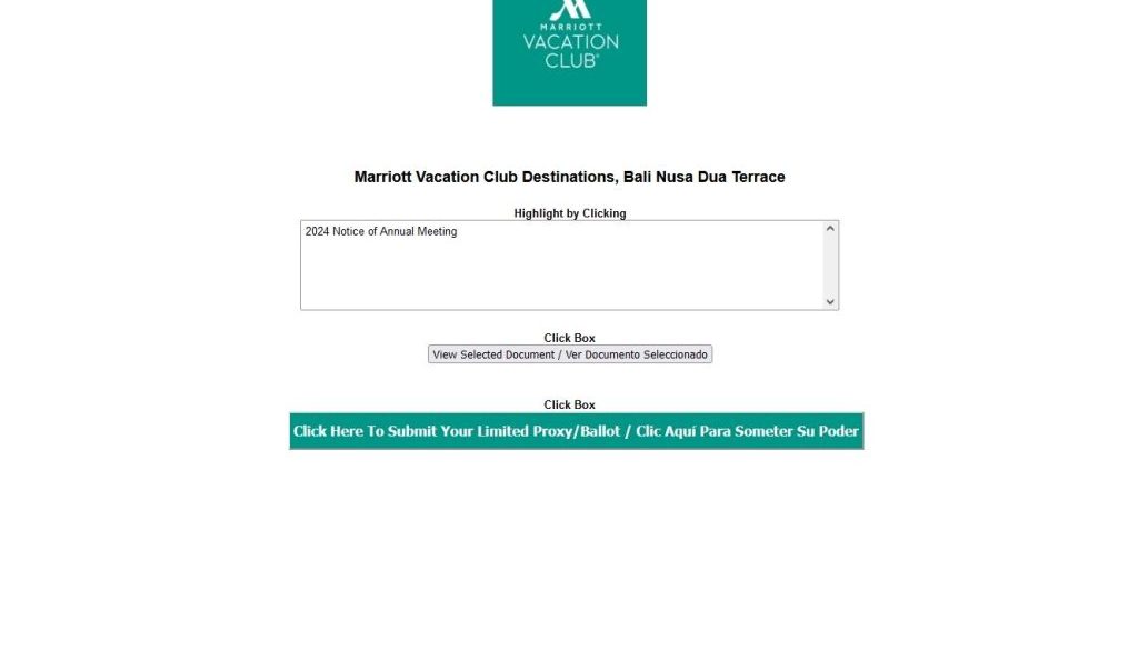 Please Vote! 2024 Notice of Election for Marriott Vacation Club Destinations, Bali Nusa Dua Terrace Member Committee